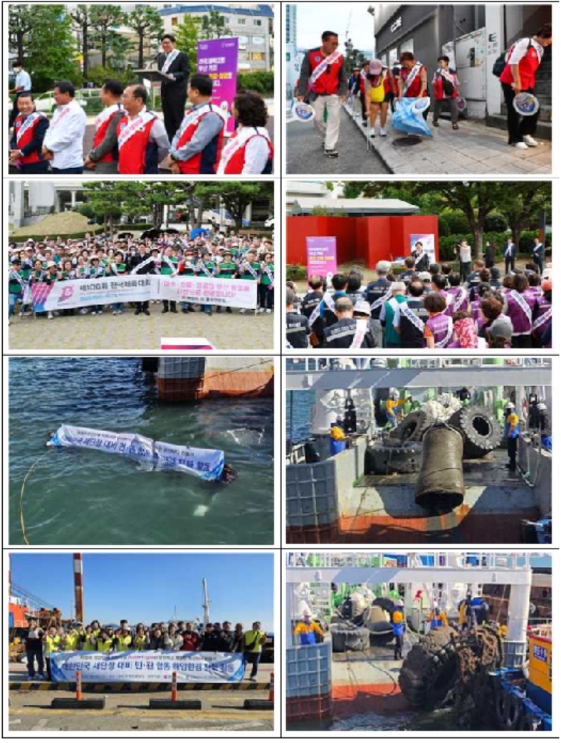 부산시는 지역 특성을 살려 다각적인 환경 정화 활동을 펼쳤다. 영도구와 기장군 해안에서는 한국해양구조협회와 협업해 해양침적폐기물 및 해안 폐기물을 처리했다. 전문 잠수부가 침적 폐기물을 수거한 후 시 해양환경관리선(503호)으로 인양해 폐타이어를 비롯한 20톤 가량의 폐기물을 처리하는 성과를 올렸다.