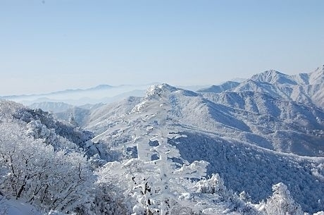 덕유산은 하늘이 선물한 은빛 성의(聖衣)를 걸쳤습니다.