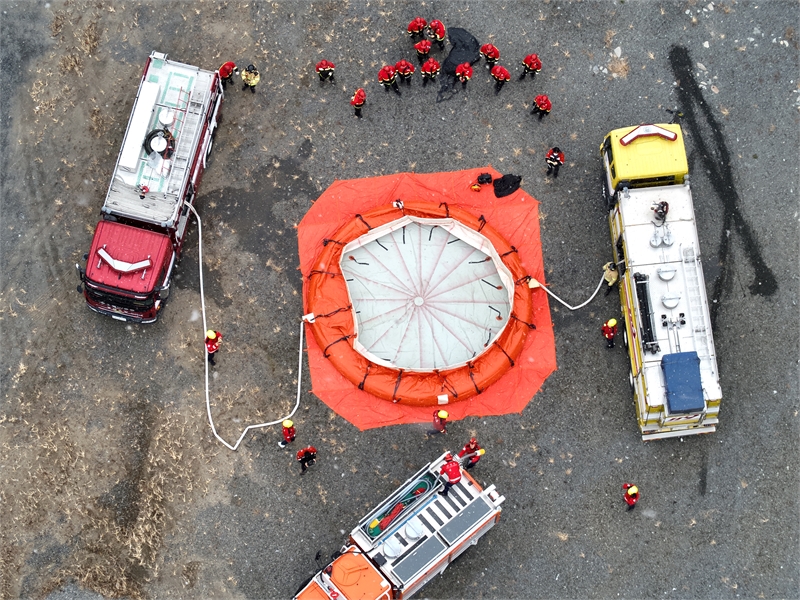 대형산불 대비 이동식저수조 설치훈련(드론촬영). 산림청 제공